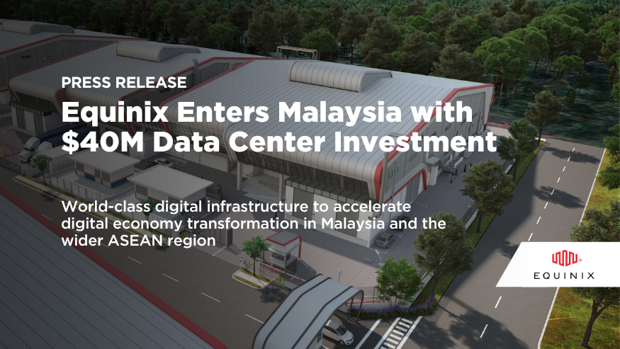 Today Equinix announced its market entry to Malaysia with plans to build a $40 million data center in Johor. The expansion will support Malaysian companies and multinationals doing business in Malaysia with access to Platform Equinix® to bring together and interconnect the foundational digital infrastructure that powers their success.