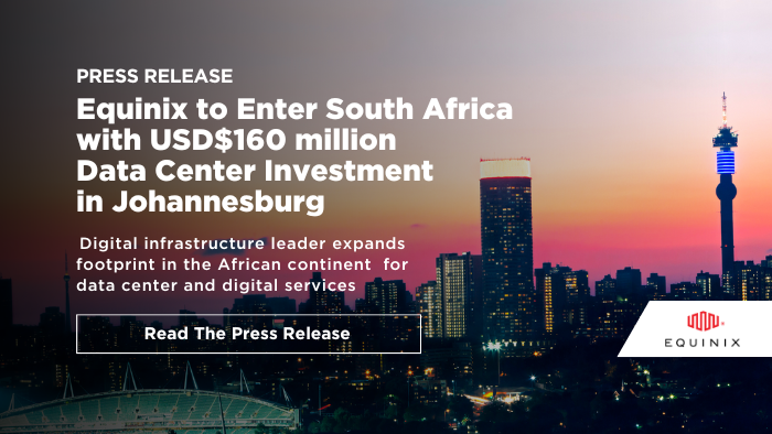 EQUINIX TO ENTER SOUTH AFRICA WITH US$160M DATA CENTER INVESTMENT IN JOHANNESBURG