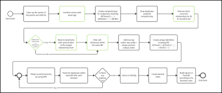 Key outcomes of this approach include automated cycle detection and breaking, recursive relationship removal, intelligent top-node identification, and location-aware duplicate elimination, all while maintaining full traceability through comprehensive data export at each processing step.