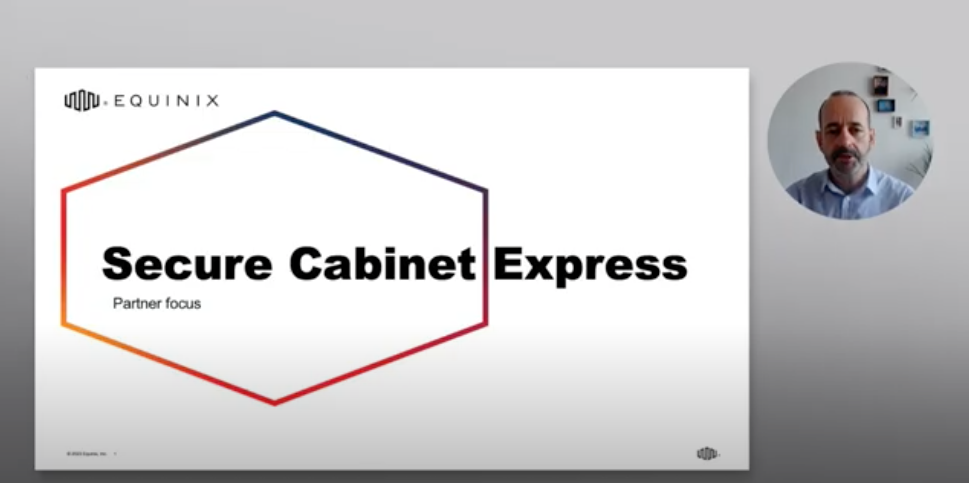Learn about how to streamline Equinix colocation deployments and increase customer satisfaction with Secure Cabinet Express. This short video covers why Secure Cabinet Express is important for customers, available sizes and power requirements, and metro availability.