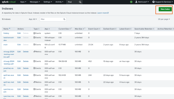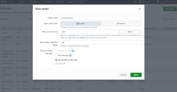 This guide will provide step-by-step instructions on how to set up Splunk Indexes and an HTTP Event Collector, enabling you to easily view Fabric Events and Metrics. You will create two Indexes—one for Metrics and one for Events—and configure the settings for data retention and storage. You can use the Index and HTTP Event Collector Token Details in the following POST /fabric/v4/streamSubscriptions request.
