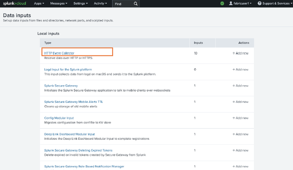- Click the New Token button to start the setup processes for the HTTP Event Collector