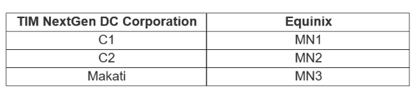 IBX stands for International Business Exchange™. Our 260+ IBX data centers worldwide provide a dynamic community for our customers to connect globally. The IBX data centers in the Philippines will adopt the Equinix naming convention as shown in the table below: