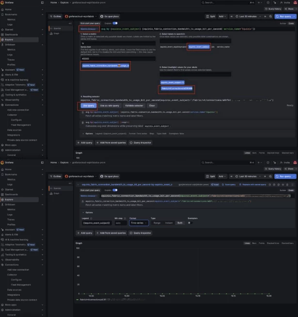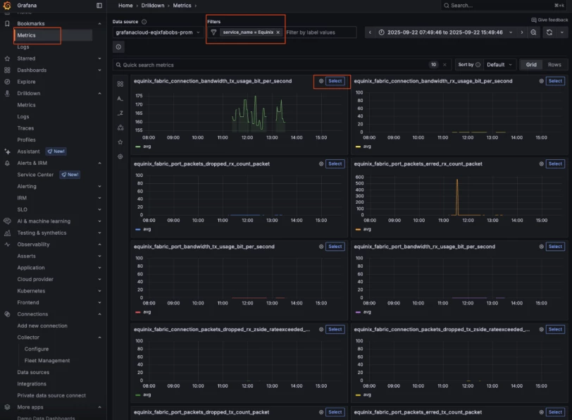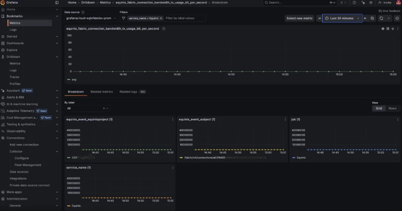 - In the Labels Search Bar, search by "service_name = Equinix".