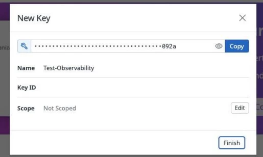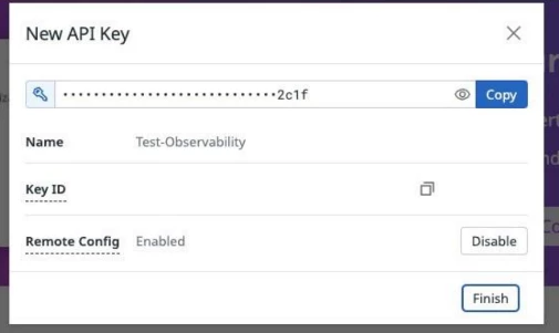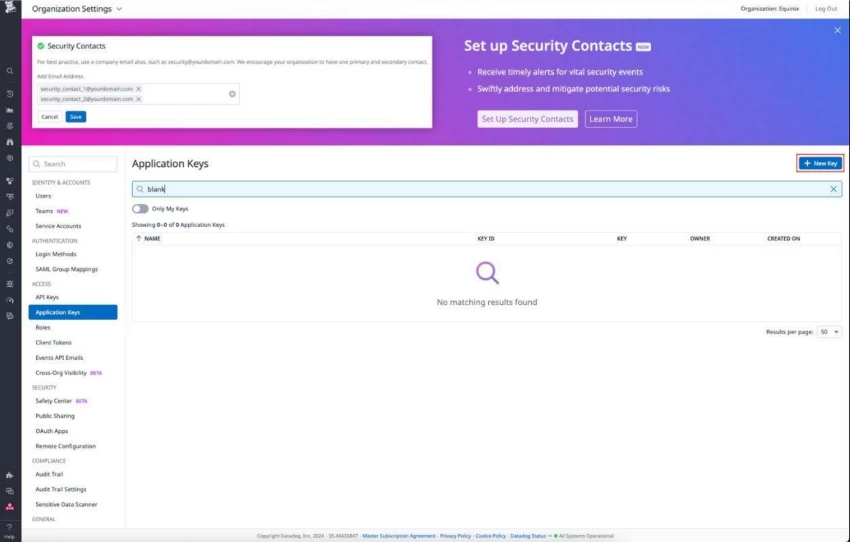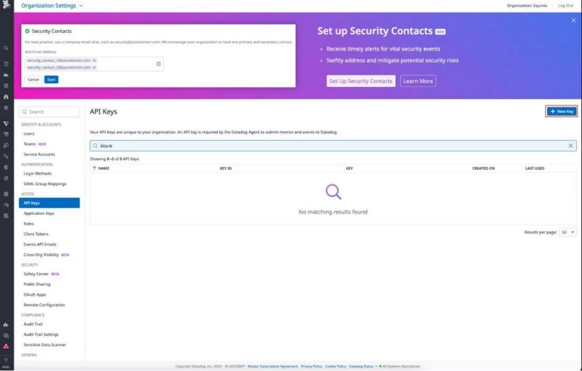 - Ensure that the API and Application Keys generated during this process are saved securely. The API and Application Keys are required for further integration or data ingestion processes.